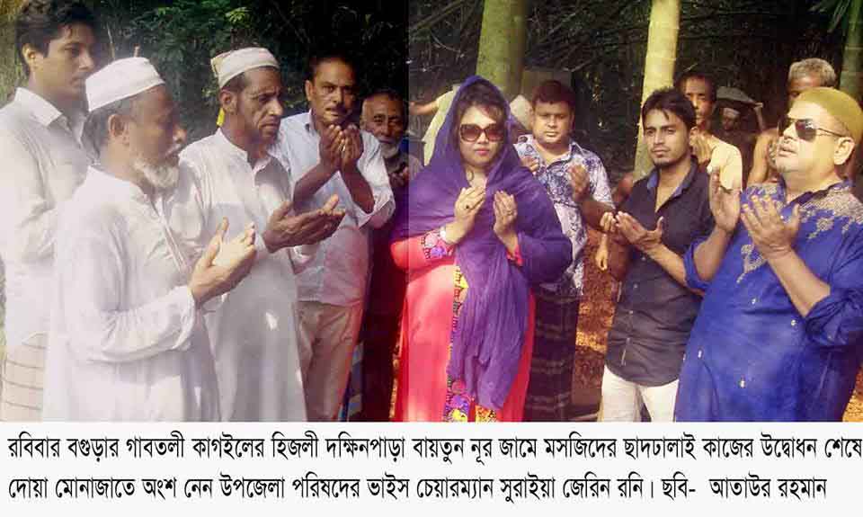 কাগইল (বগুড়া) প্রতিনিধিঃ গতকাল রবিবার বগুড়ার গাবতলী কাগইলের হিজলী দক্ষিনপাড়া বায়তুন নূর জামে মসজিদের ছাদ ঢালাই কাজের উদ্বোধন শেষে দোয়া মোনাজাতে অংশ নেন উপজেলা পরিষদের ভাইস চেয়ারম্যান মোছাঃ সুরাইয়া জেরিন বিস্তারিত