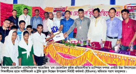 বিশ্বনাথ প্রতিনিধি : বিশ্বনাথ ডেফোডিল এসোসিয়েশনের উদ্যোগে আয়োজিত ৫ম ডেফোডিল কুইজ প্রতিযোগীতা সম্পন্ন হয়েছে। শনিবার (০৫ জুলাই) সকাল থেকে উপজেলার দশঘর এনইউ উচ্চ বিদ্যালয় মিলনায়তনে প্রতিযোগীতাটি অনুষ্ঠিত হয়। চূড়ান্ত প্রতিযোগীতা বিস্তারিত
